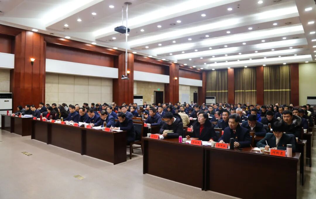 会上,县委常委、常务副县长李强海宣读了县委、县政府关于表扬集体、个人的通报、关于2023年度经济发展项目奖励的通知;县委常委、统战部部长石磊作统战工作报告;县委常委、县办主任黄齐飞安排部署信访维稳工作;县委常委、组织部部长成西作组织工作报告;县委常委、宣传部部长师红河作宣传工作报告;副县长、县公安局长雷风作政法工作报告。